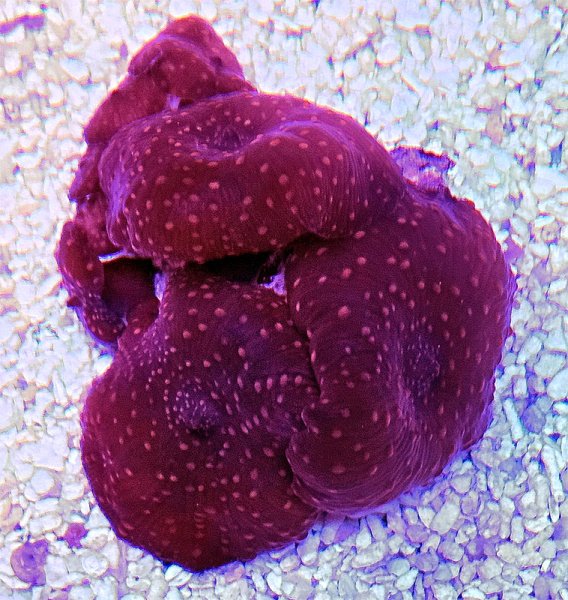 NEW!! These are Ultra Red Pimpled Mushroom soft corals. They simply SCREAM Red! Peppered with lighter red pimples gives them a unique textured look while maintaining their brilliant red.