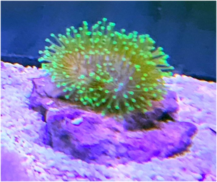 The Ultra Green Polyp Flat Crown Toadstool soft coral is a slow growing Toad, second only to my Yellow Elegans Toadstool! I currently only have one parent so when you see this beauty available, grab one as there will be few to offer each time.