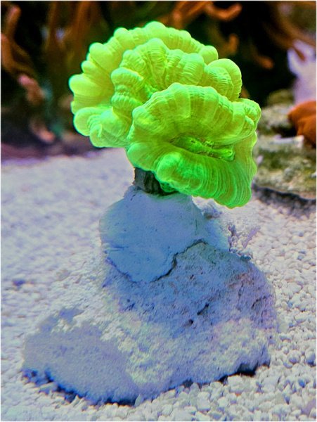 Be very careful when handling LPS corals as the flesh part can easily be damaged which could cause a bacterial infection that could kill the entire coral, even neighboring heads or branches. Always handle by it's base or branch where no flesh is present.