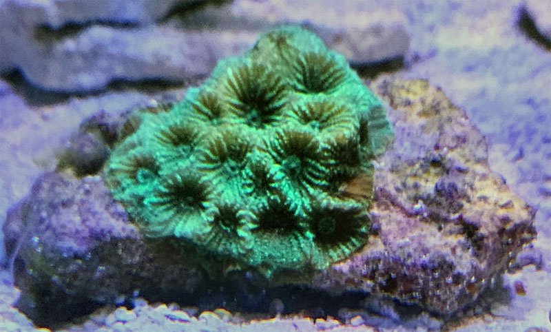 Care: NO special care needed. It is happy on the sand OR on the rocks. I do NOT recommend trying to direct feed it. Feed your fish only so you don't foul your tank. I do NOT direct feed ANY of my corals whether soft, LPS or SPS.