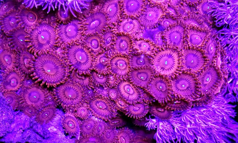 Zoa soft corals are easy keepers - super hardy. One of the few that enjoy being on the sand bed as well as up on the rocks. They offer a POP of color wherever you place them.